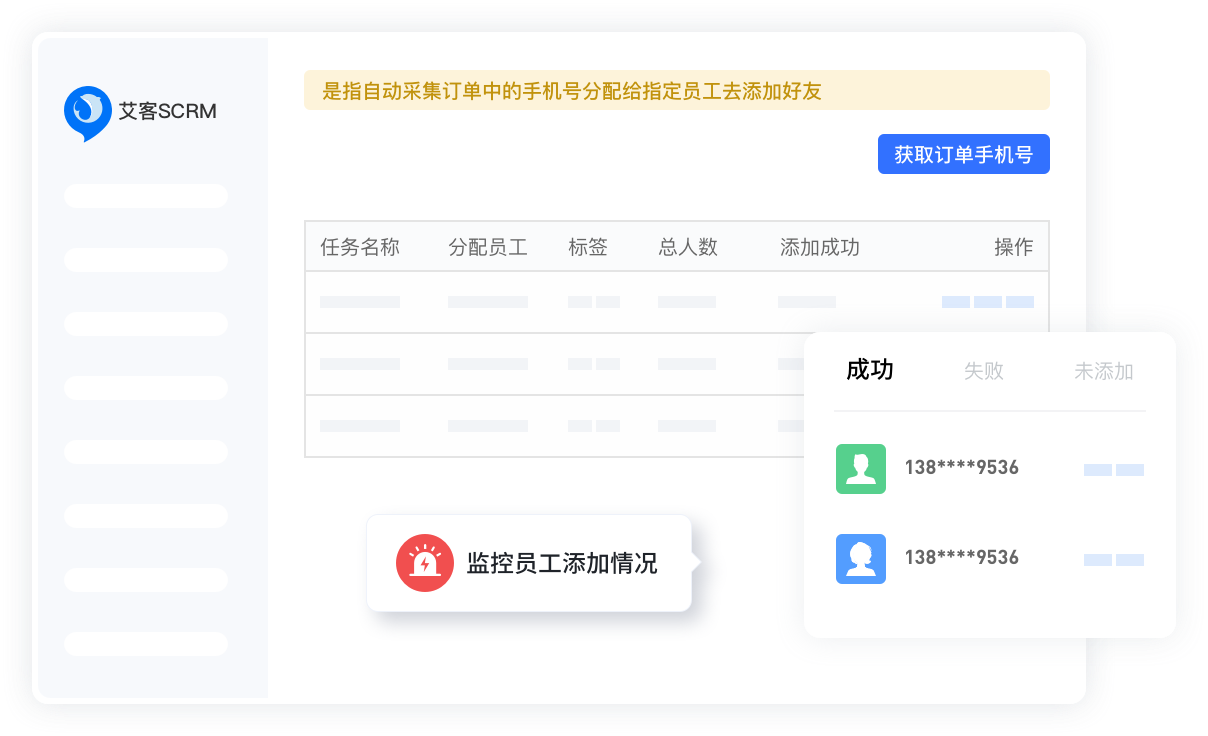 艾客SCRM系統(tǒng),打通各大電商平臺,通過客戶訂單實現(xiàn)循環(huán)吸粉,幫助企業(yè)高效率把電商公域流量轉(zhuǎn)出企微私域流量池