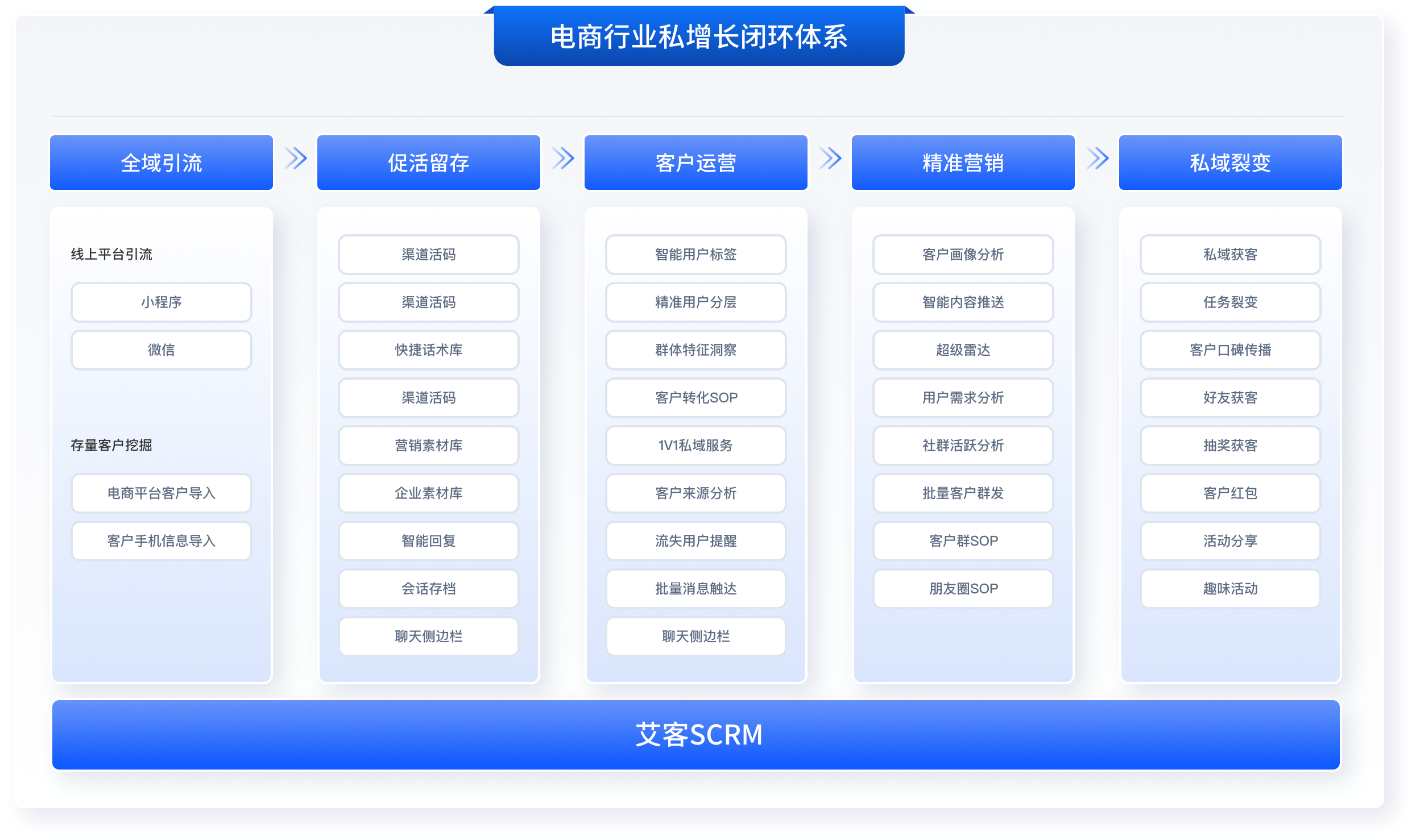 打通全域引流、促活留存、客戶運營、精準營銷、私域裂變的閉環體系