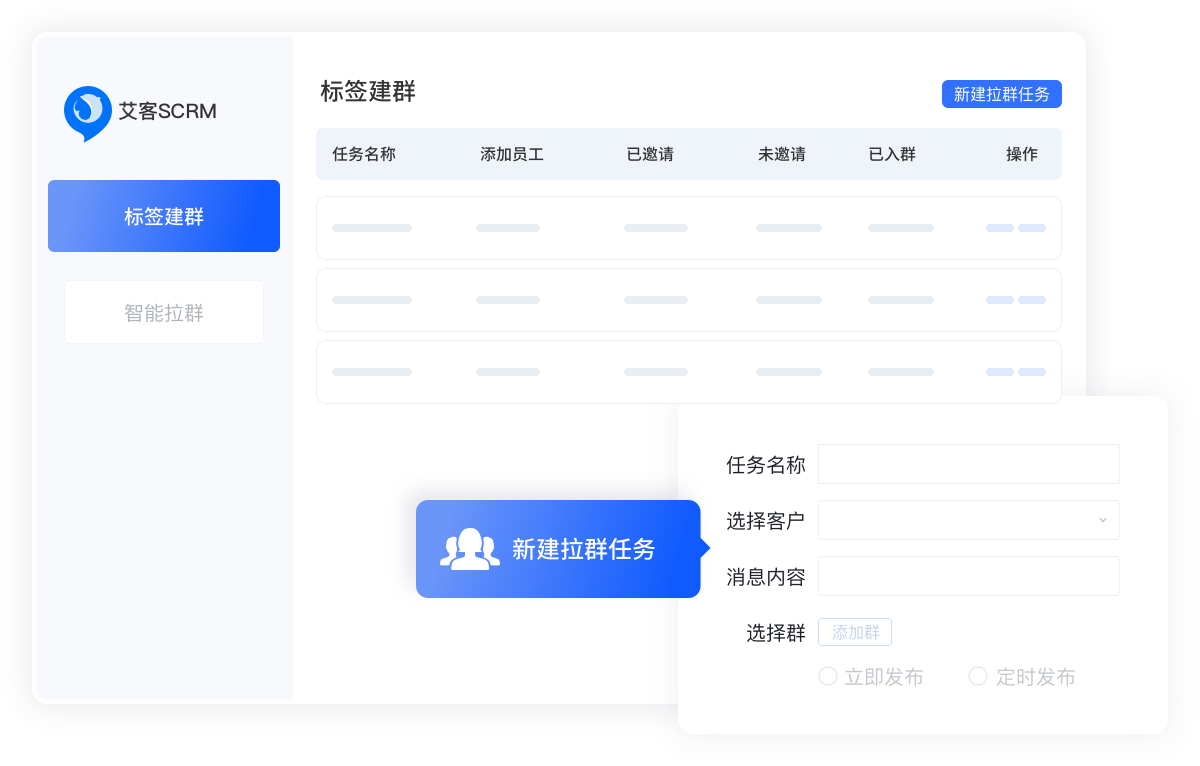 智能拉群、標簽建群實現自動化拉群,一鍵設置群發SOP計劃,再也不用擔心無法和漏發課程通知、最新活動、營銷任務。