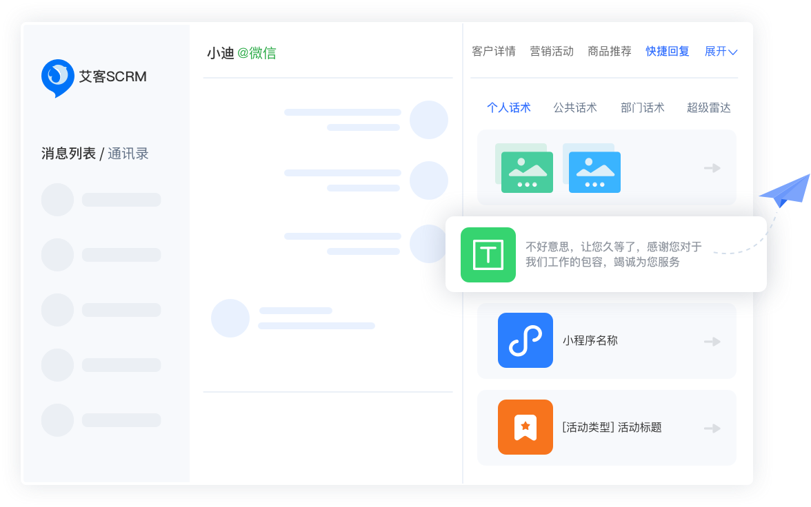 利用快捷回復、客戶畫像、超級雷達等功能,提高溝通效率,幫助員工更快速的轉化學員。