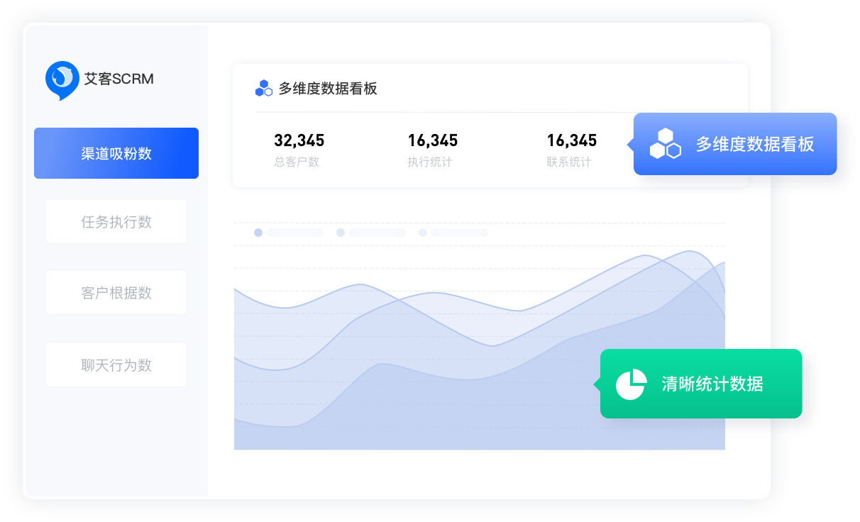 私域過程全面管理,清晰統(tǒng)計過程指標(biāo),有渠道吸粉數(shù)、任務(wù)執(zhí)行數(shù)、客戶根據(jù)數(shù)、聊天行為數(shù)等20項數(shù)據(jù)指標(biāo)