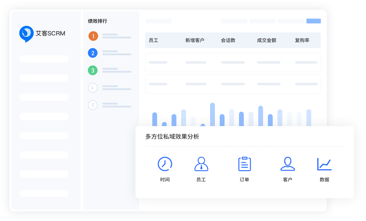 清晰統(tǒng)計私域項目業(yè)績數(shù)據(jù),可以通過時間、員工、訂單、客戶、店鋪等維度分別查看私域數(shù)據(jù),讓您快速找到項目優(yōu)化方向