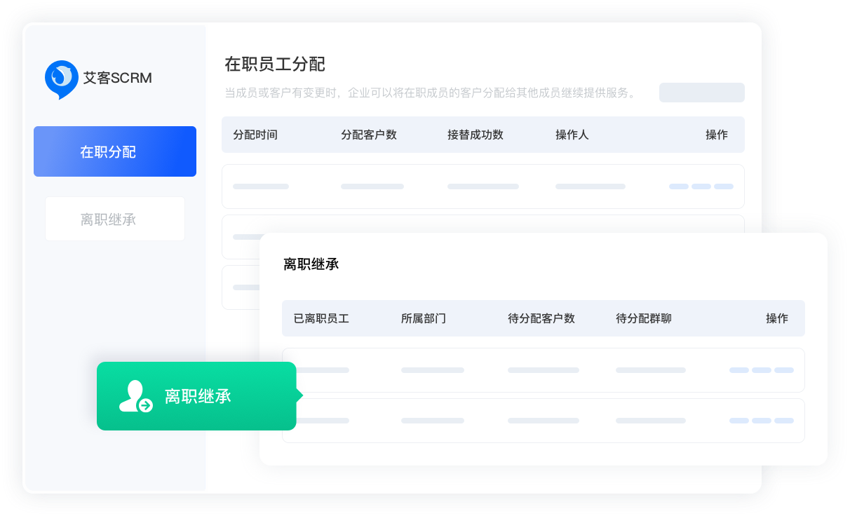 在職員工的客戶,無需客戶同意,可以轉(zhuǎn)移給其他同事;離職員工的客戶,可以一鍵讓其他在職同事繼承,防止員工流失,保護(hù)企業(yè)資產(chǎn)