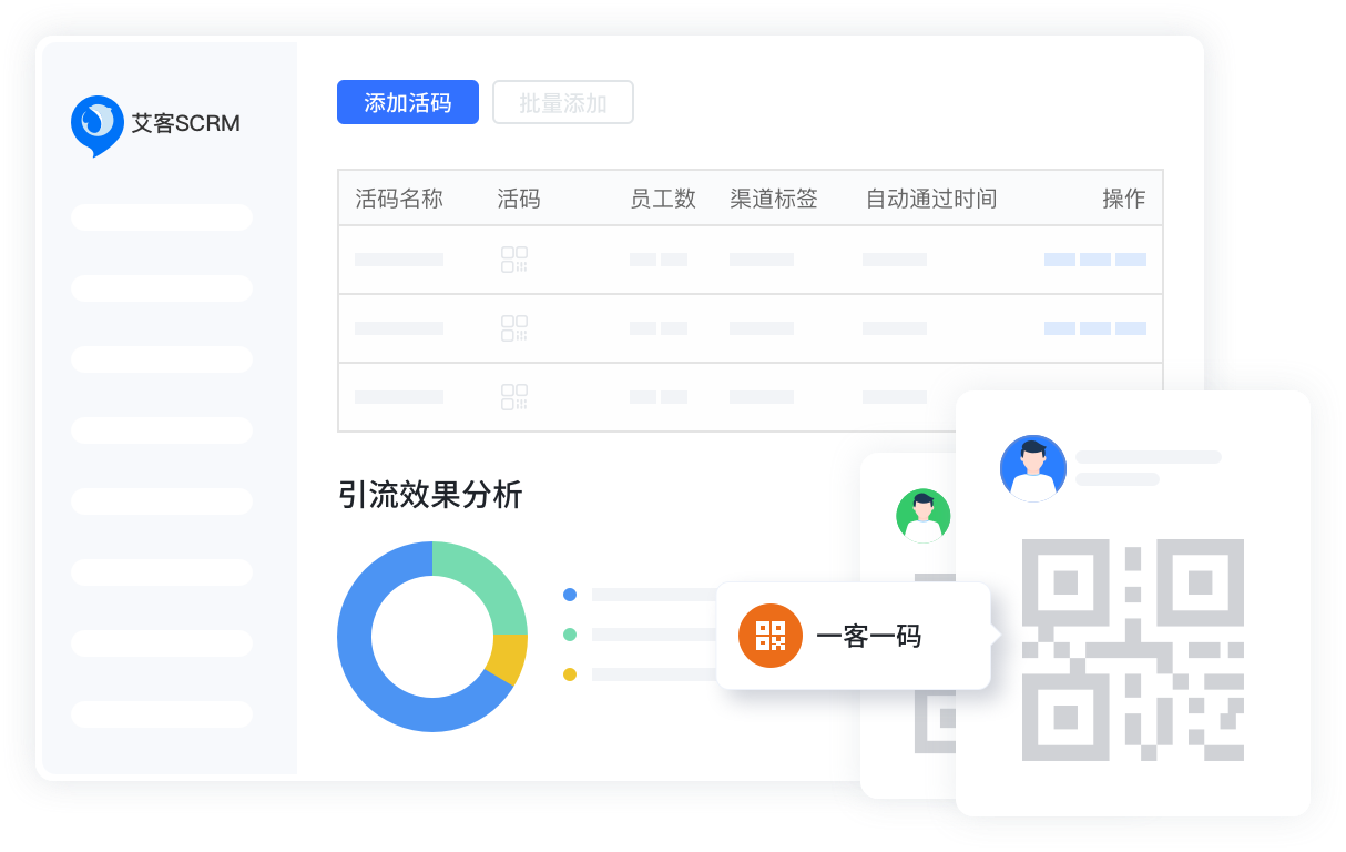 實現(xiàn)一客一碼,多渠道活碼引流,實時自動分流,清晰統(tǒng)計客戶來源,分析渠道引流效果