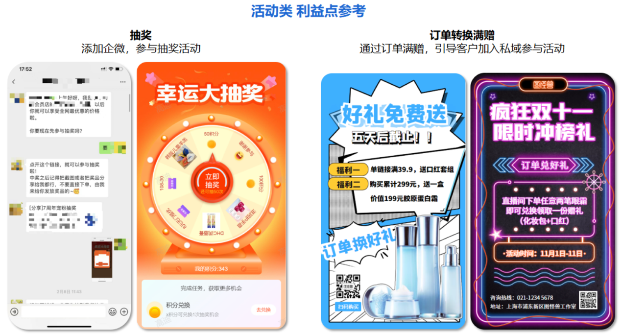 2、活動獎勵:抽獎、積分、訂單轉換滿贈等;
