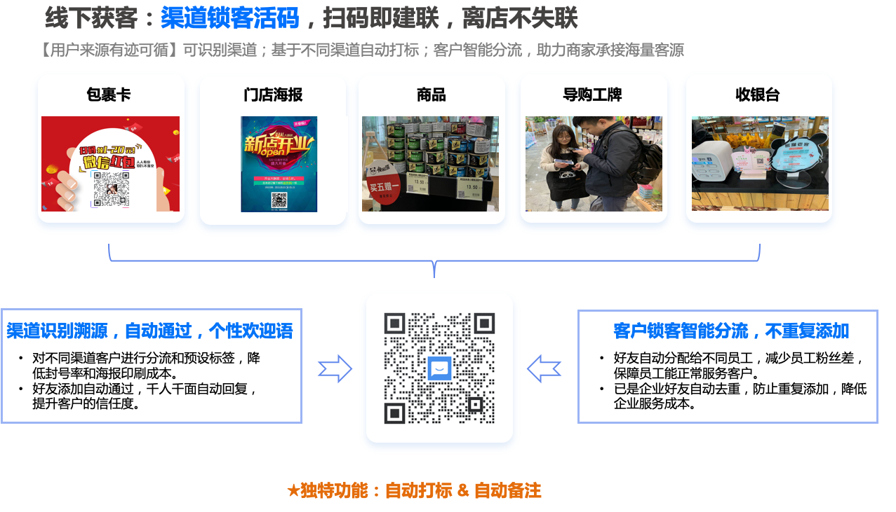 艾客渠道活碼功能自動通過,發送個性歡迎語,自動打標簽、智能分流。