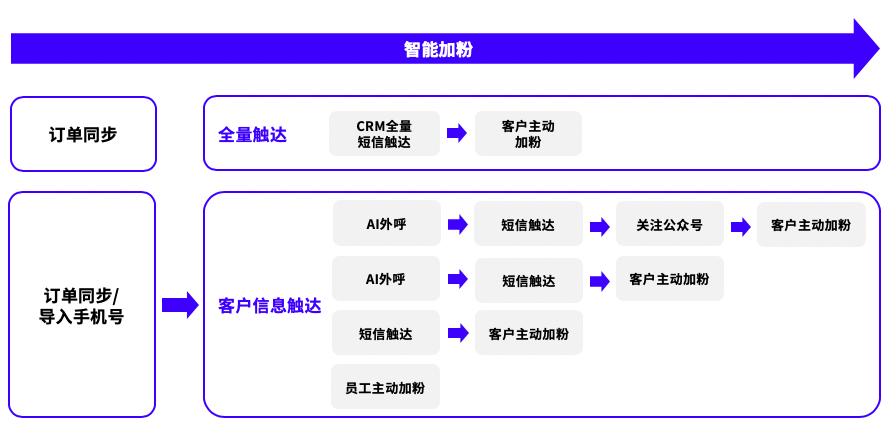 AI電話主要用于對客戶進行初步觸達、加粉利益點告知、以及提醒用戶查看短信或好友申請,從而添加企微。