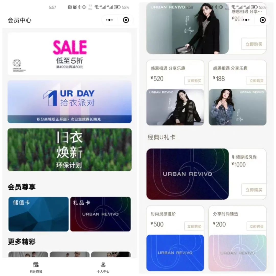 除此之外,UR 商城還為會員準備了儲蓄卡和禮品卡如經(jīng)典U禮卡、明星限定禮品卡等。