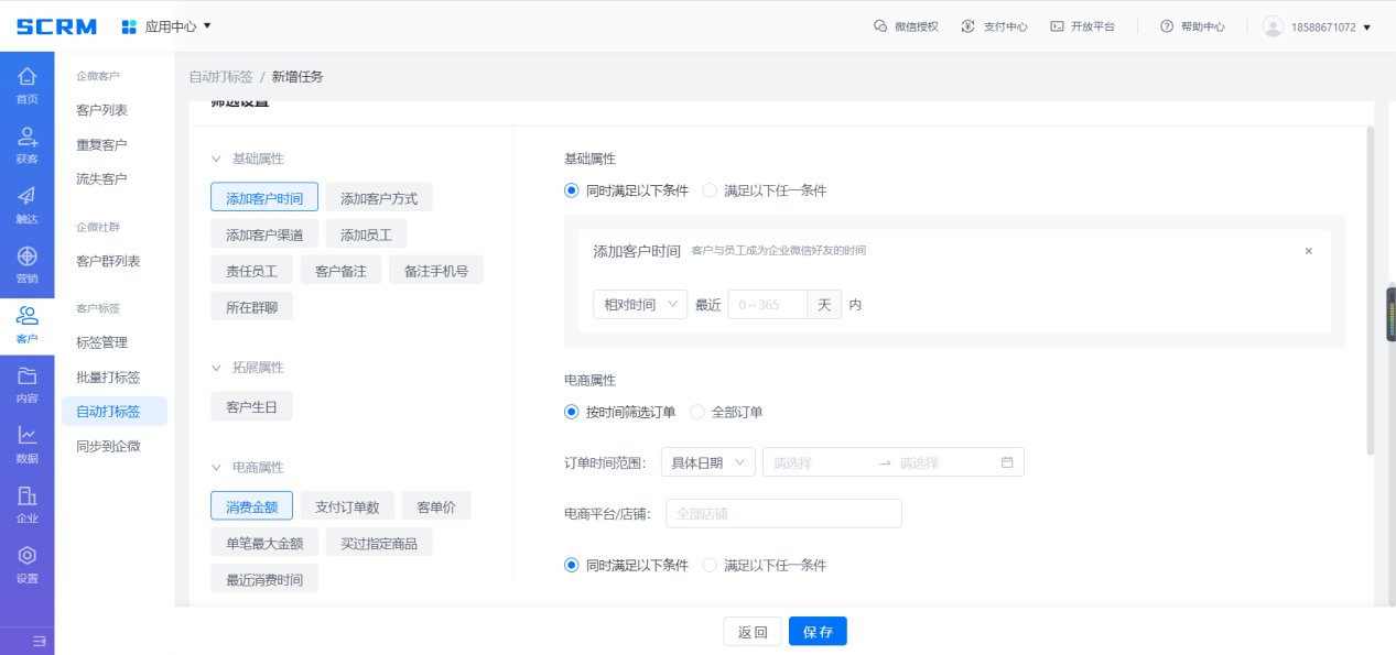 【客戶運營】通過創(chuàng)建自動打標簽任務(wù),給滿足條件的客戶打上標簽。