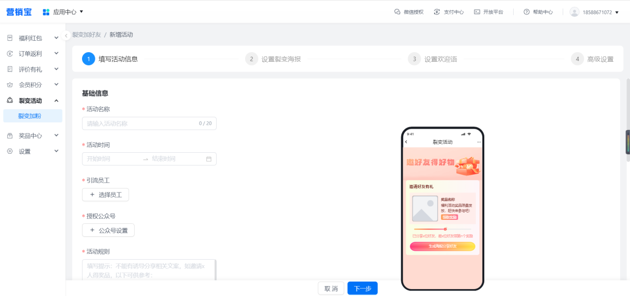 【營銷活動-裂變加粉】通過忠實用戶進行裂變活動,進行老帶新,添加更多的粉絲