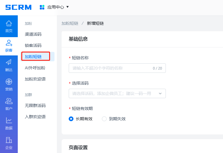 艾客SCRM支持生成加粉短鏈。短鏈可投放至外部平臺(tái),客戶點(diǎn)擊短鏈后即可跳轉(zhuǎn)至小程序進(jìn)行好友添加