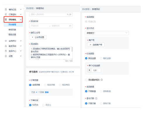評(píng)價(jià)有禮:商家可使用評(píng)價(jià)有禮實(shí)現(xiàn)獲得好評(píng),提高店鋪權(quán)重等業(yè)務(wù)需求,幫助商家提高店鋪美譽(yù),促進(jìn)成交