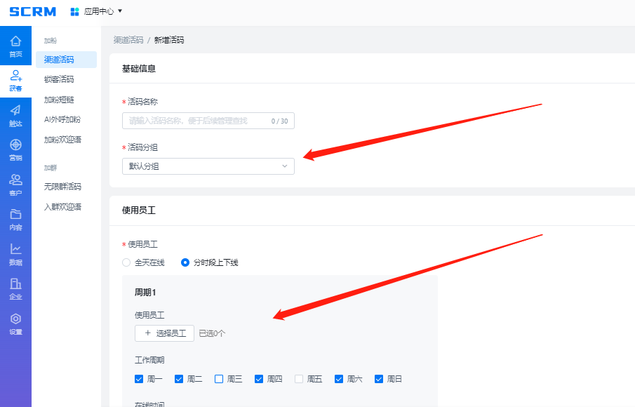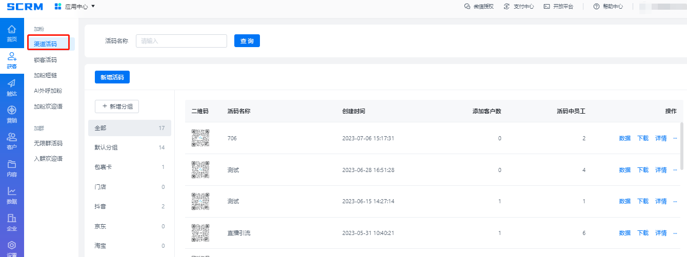 活碼的有效管理:比如活碼分組用于便捷管理多個區域或者公司內部分區域的劃分;工自動上下線,基于門店員工的輪班制;客戶掃碼后自動通過,從而降低前端員工人工作量,提高人效;個性化的歡迎語,助力每一個門店擁有自主的營銷策略