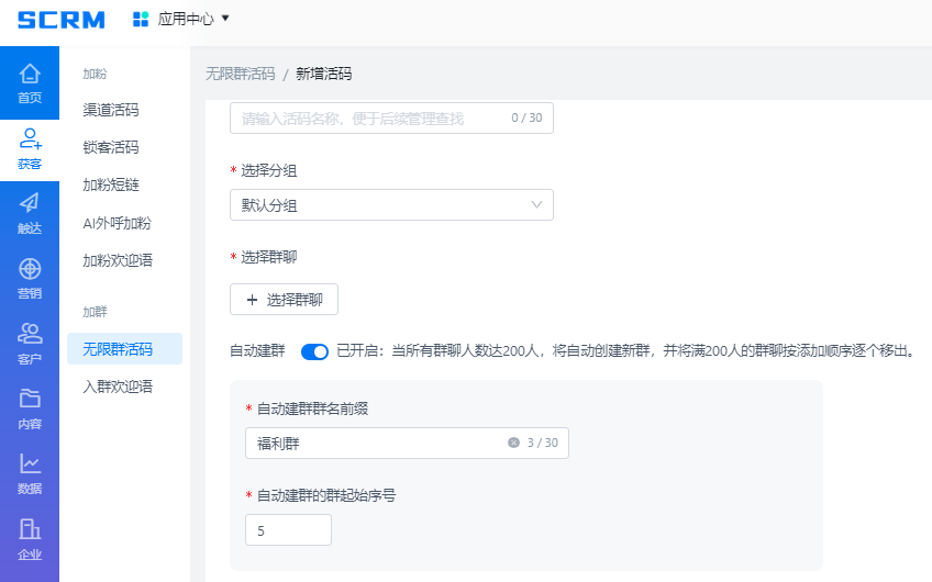 關于群活碼,目前商家多使用企微原生的群活碼,但是此類活碼有時效性與自動創建新群個數為5個的限制,從而掣肘了商家的許多留存鏈路