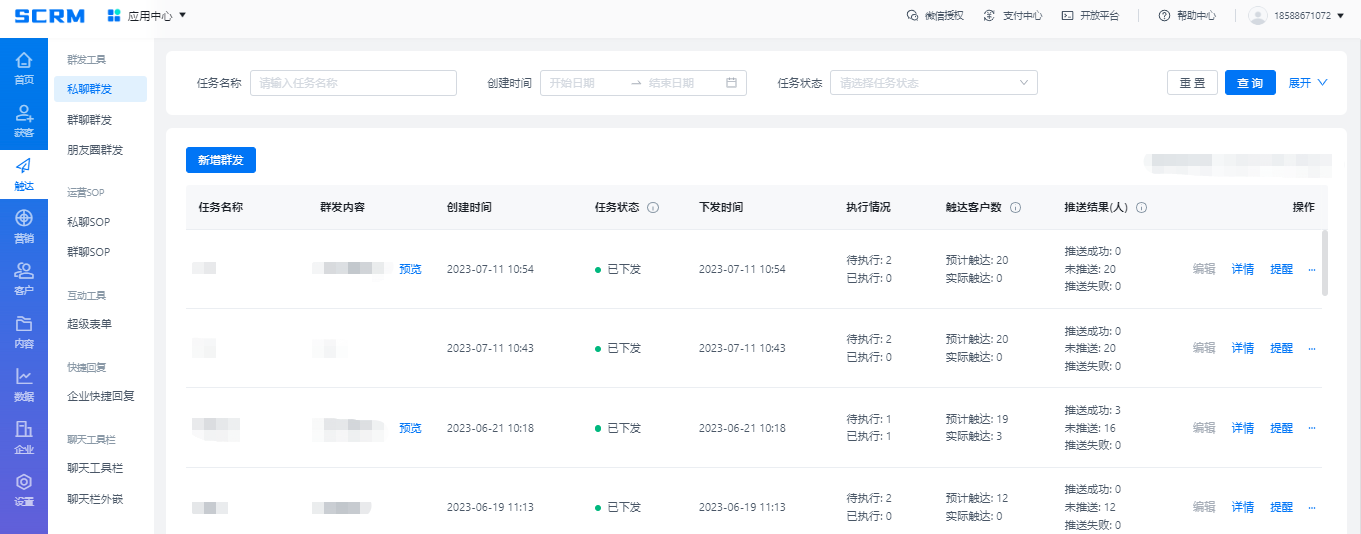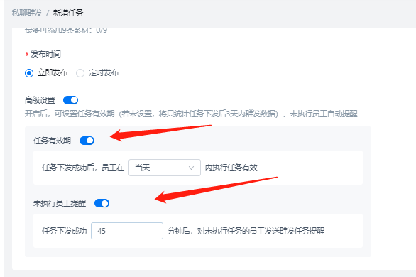 艾客在這方面,考慮了商家的對于線下門店的員工績效考核,員工執行,超時提醒的需求,對于私聊群發與朋友圈,給予任務監控制度與任務提醒制度