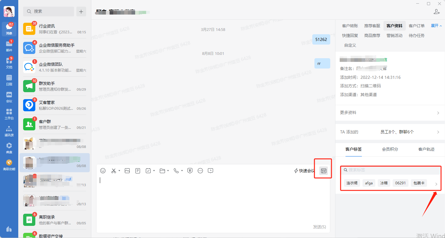 ②手動打標的方式:在企微側邊欄進行手動選擇標簽