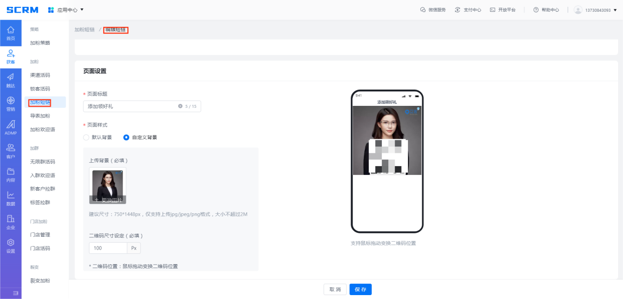 圖1:工具路徑:艾客SCRM-獲客-加粉短鏈