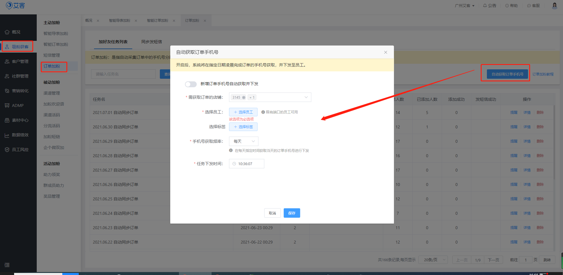 企業微信本身是沒有這項能力的,這時我們可以通過艾客scrm的訂單加粉功能,來實現這項需求。