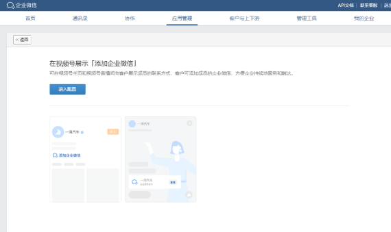 PC端操作路徑:企微后臺—應用管理—視頻號—在視頻號展示「添加企業微信」