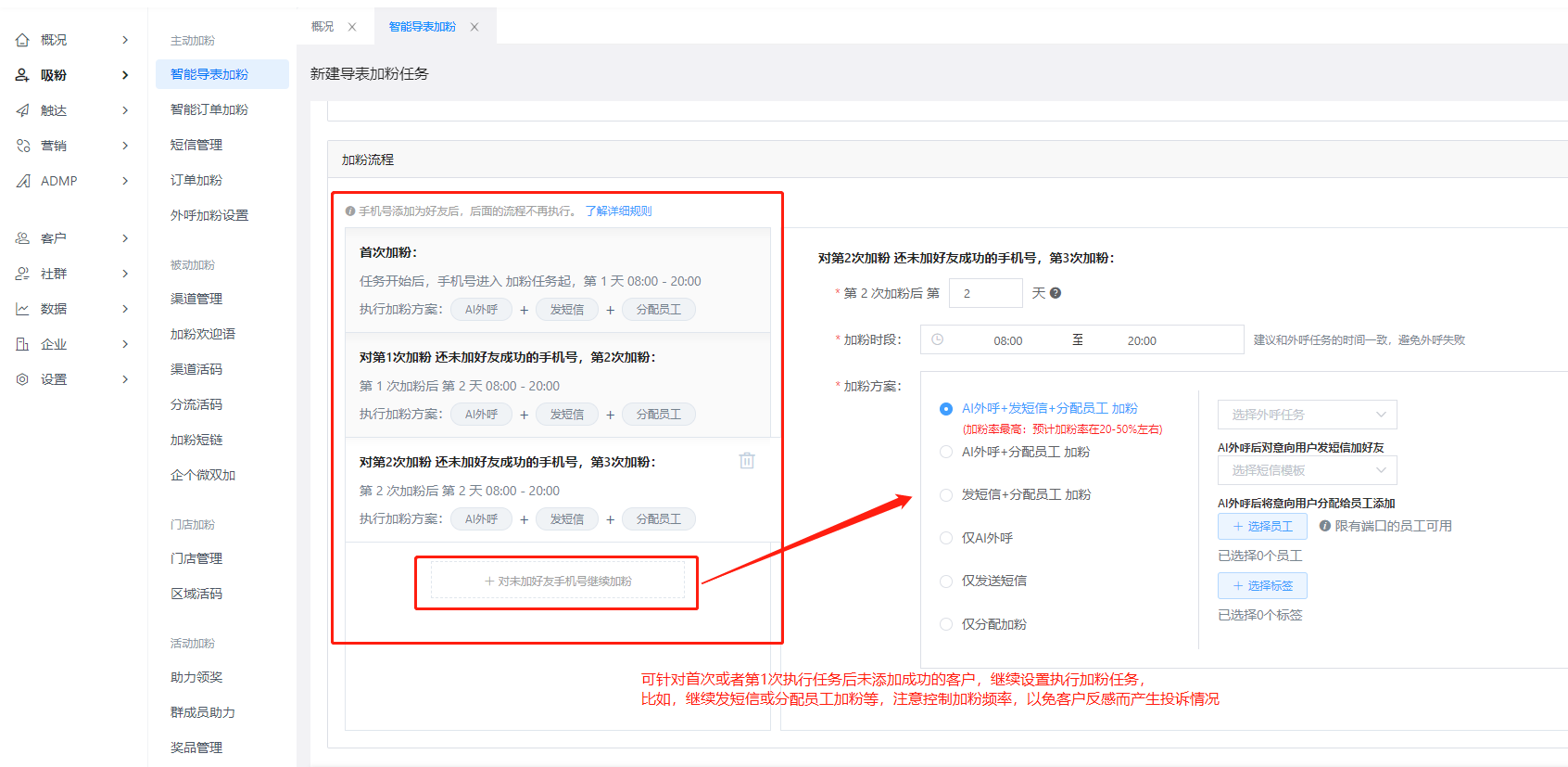 可以針對首次加粉失敗的手機號碼,設置二次加粉任務,注意控制加粉頻率。