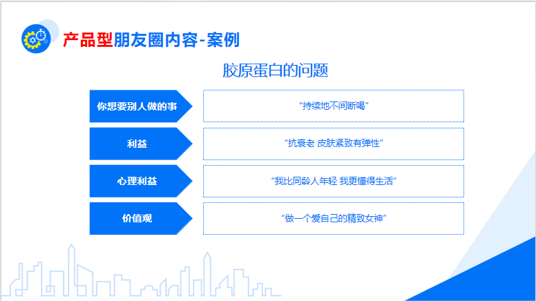 產品型朋友圈目的在于讓粉絲相信你的產品并且想要購買你的產品,而發布的底層邏輯就在于販賣焦慮,同時解決方案和未來期望,一種方法是站在用戶視角分析買的原因或不買的阻礙,另一種圍繞產品本身,展開使用功能上需要強調的關鍵點。具體可以進行產品介紹、產品功能、產品搭配及活動介紹等。