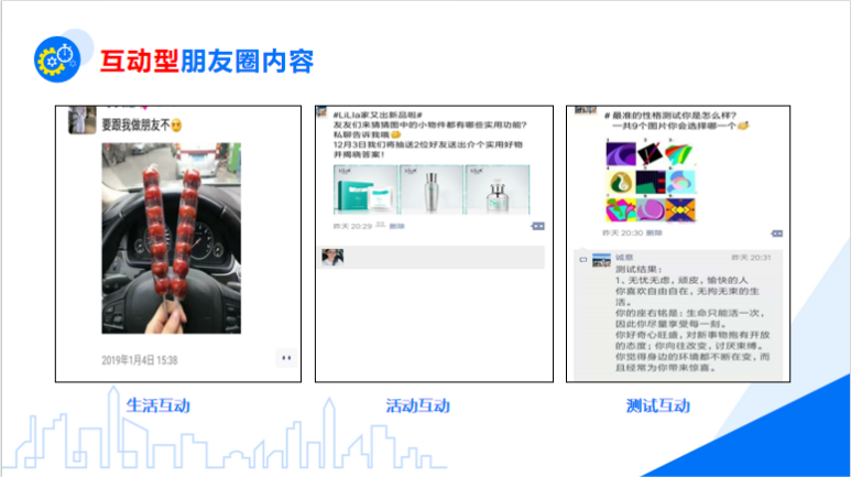 那么如何做好朋友圈內容呢?有哪些類型?具體如何玩?朋友圈可分為三個類型,分別是人設型朋友圈、產品型朋友圈以及互動朋友圈,下面將一一講解。
