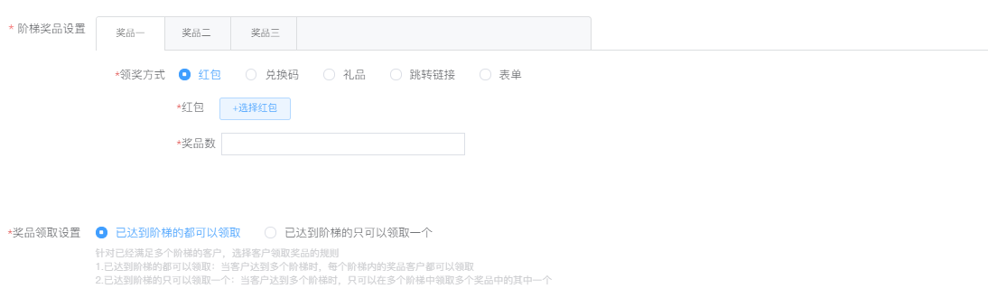 2、在獎品的設置上,還可以進行相關階梯設置。