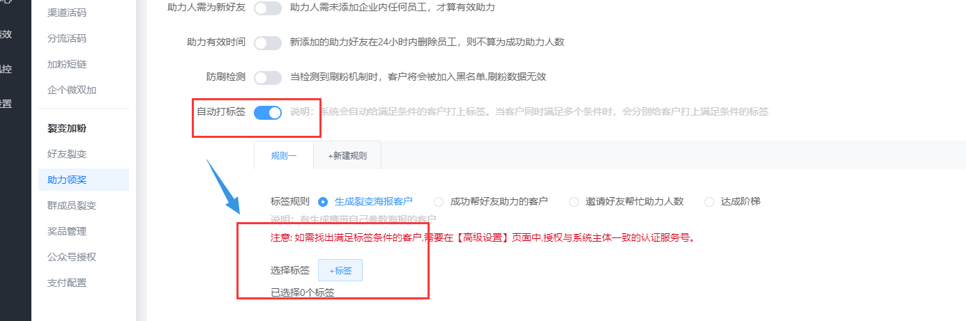 3、在規則設置里面有多項選擇,企業可以需要進行開啟或者關閉。根據條件自動打上標簽,方便后續的跟進,了解更多詳情,歡迎申請免費試用!