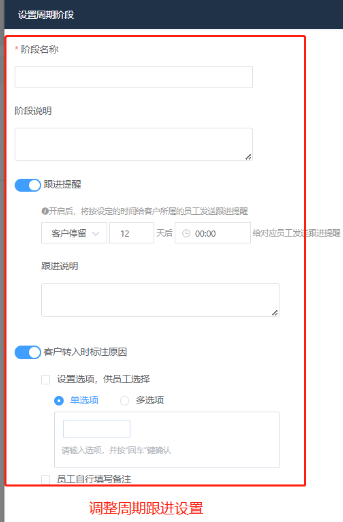轉入原因:設置后,員工將客戶添加至該階段,需選擇或填寫轉入原因。