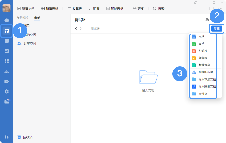 企業(yè)微信可以從手機(jī)端、電腦端、會(huì)話頁面創(chuàng)建新的文檔,并且也支持導(dǎo)入文檔。