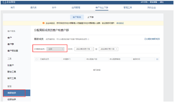 要注意的一點是,客戶分配后的二十四小時,如果沒有主動拒絕的話,就會自動為其添加新接替成員為聯系人,成員會收到繼承完成的提醒。一旦客戶主動拒絕,企業成員可以選擇主動添加其為聯系人。