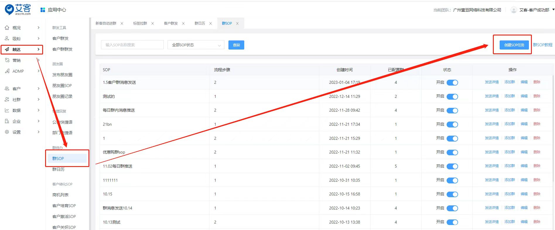 企業微信本身沒有相應功能,來幫助企業實現SOP自動化運營。但是企業能通過企業微信營銷管理工具艾客SCRM系統的個人SOP、群SOP功能、朋友圈SOP功能,更好地規范員工的運營工作,實現自動化運營。