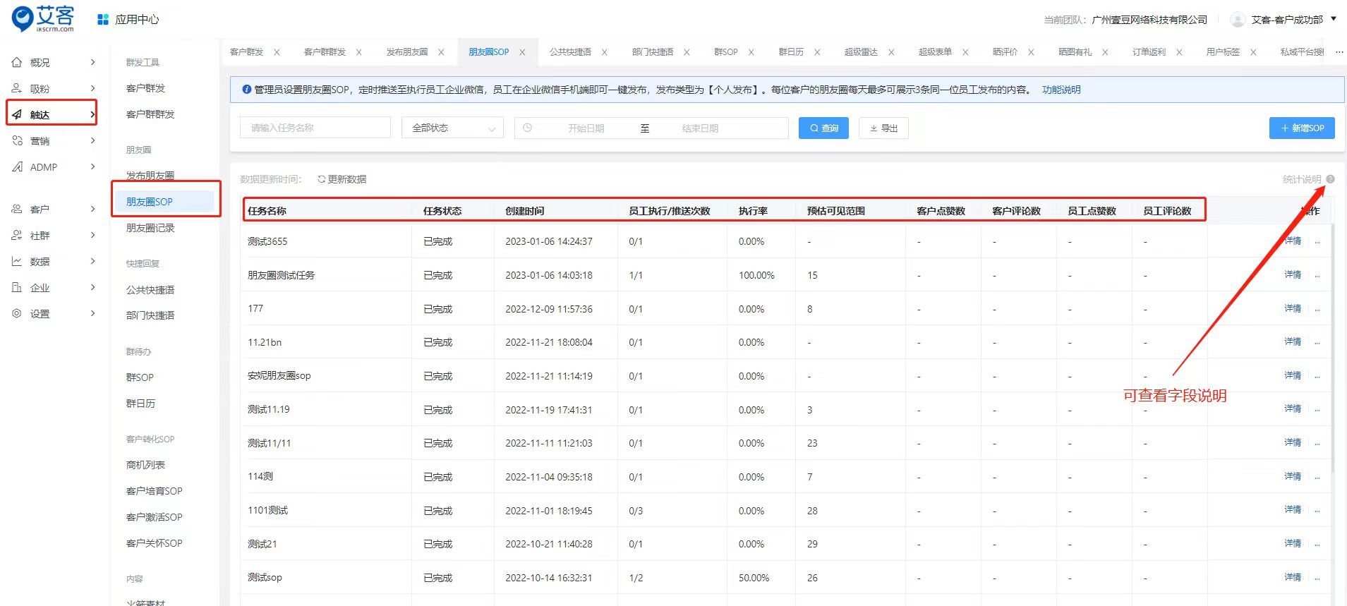 員工根據下發任務完成朋友圈發布后,系統會通過發布內容和任務內容進行相匹配,在發布內容一致的情況下能統計到發圈的相關數據。
