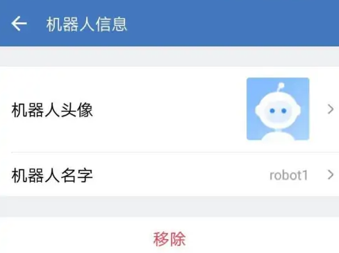 點擊群機器人,進入到群機器人頁面列表,點擊需要移除的機器人,進入此機器人頁面,再點擊右上角的三個點圖標,直接點擊“移除”即可。