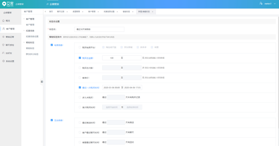 但在實際工作中,當企業擁有大量的客戶時,如果一個個手動去添加客戶標簽,工作量大,效率也不高。這時可以使用企業微信服務商-艾客scrm的自動打標簽功能來實現。