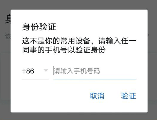 如果換了一部手機進行登錄企業微信賬號,會出現一個身份驗證提示,內容是“這不是你的常用設備,請輸入任一同事的手機號以驗證身份”,當輸入某一個同事的手機號驗證通過后,方可以成功登錄企業微信。并且在成功登錄的同一時間,原手機上的企業微信賬號會自動退出,不能再進行使用。