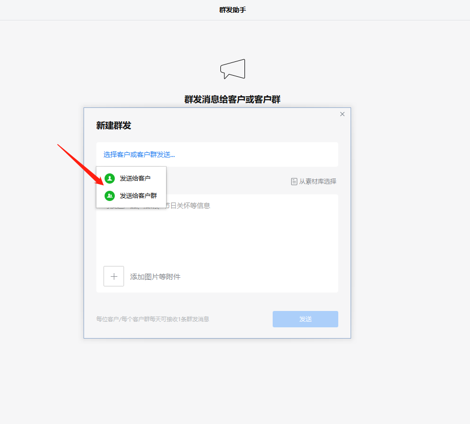 答案當然是可以啦。批量群發有兩種方式,一種是企業群發,一種是客戶群發。