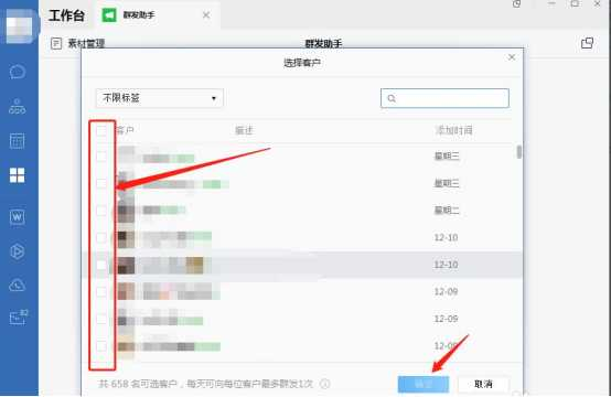 點擊【選擇客戶或客戶群發送】-再點【發送給客戶】,勾選客戶,點【確定】