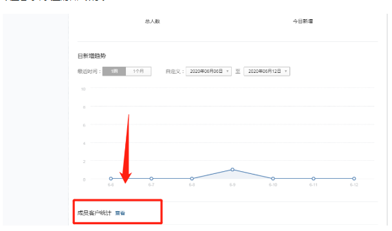 除了需要查看總的客戶數,企業管理員還需查看成員客戶統計。查看的方法很簡單,根據上述的方式進入【客戶聯系】—【客戶頁面】,就能在全部客戶數下方看到一個“成員客戶統計”入口,點擊進行查看就可以。