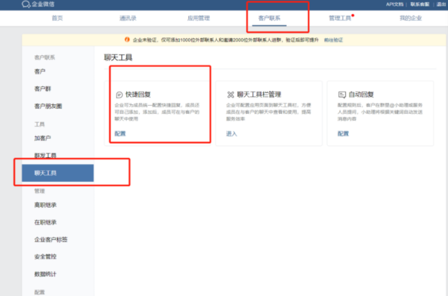 在設置企業默認分組話術時,只需管理員登錄企微后臺,按操作路徑【客戶聯系】—【快捷回復】,即可添加快捷回復。這里的話術由企業統一配置,當然員工也能自己添加。