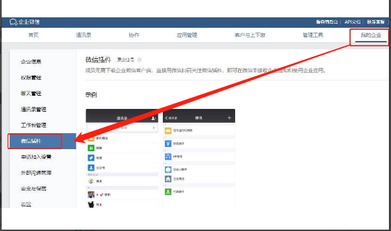答案是可以的,在電腦端登錄企業微信,點擊【我的企業】—【微信插件】就可以啦。