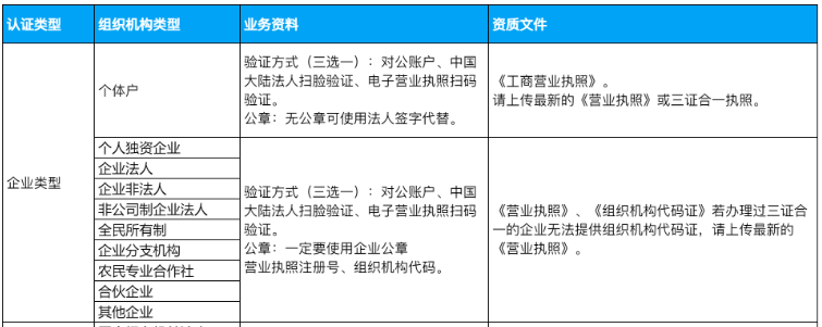 2、在提供資質文件上,個人驗證提供個人信息,而企業驗證則需要提供企業的相關資質文件進行驗證。