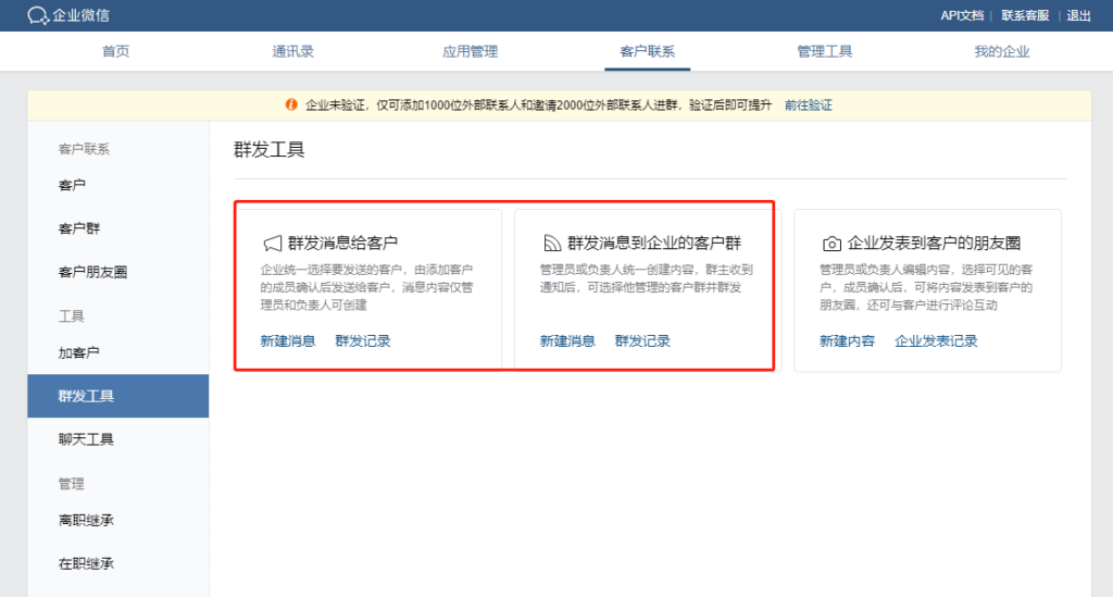 企業微信自帶的功能是有群發功能的,企業微信管理員可以從企業微信管理端進行配置,從“客戶聯系”——“配置”——“群發消息給客戶”/“群發消息到企業的客戶群”,看企業想要群發給企業好友或者群發給各個社群,新建群發任務即可。