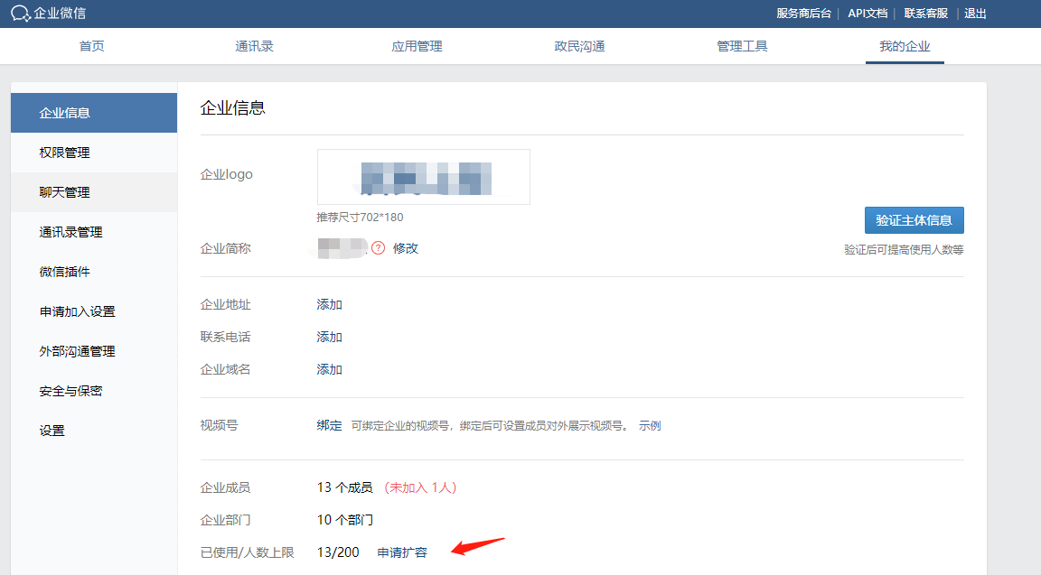企業微信最開始是有默認加好友上限的,人數上限默認是200人。企業在發展的背景下,想要申請擴容,前提條件是需要通過認證或者已驗證。