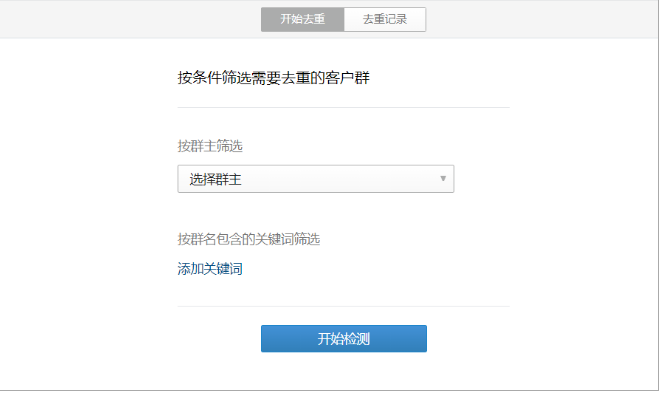 再點擊開始去重,按群主來篩選企業微信群,也能通過查找群名來篩選客戶群。