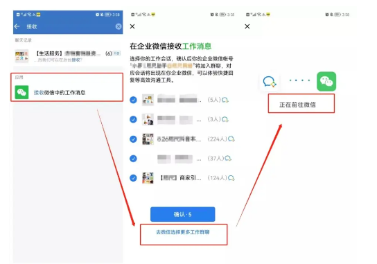 2、看到【去微信選擇更多工作社群】這個選項后,繼續點擊后就可以從企業微信跳轉到微信。