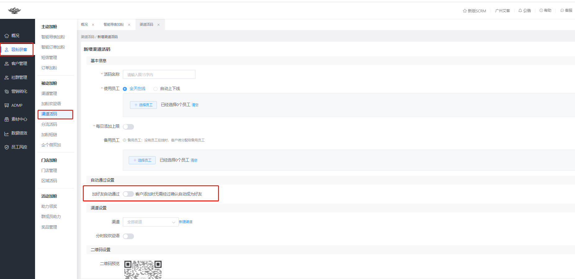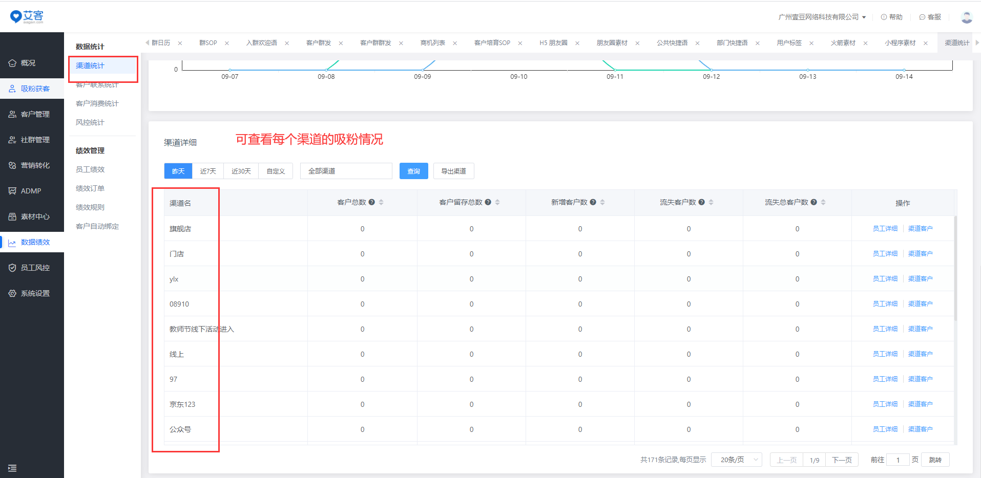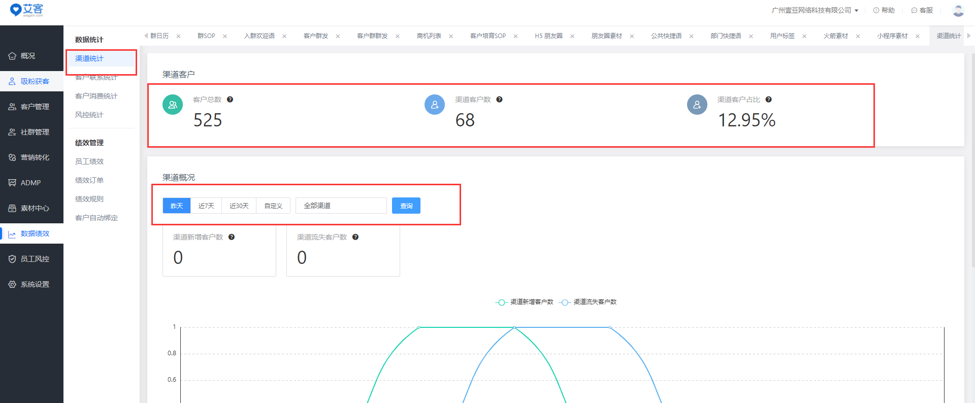 使用艾客SCRM的【渠道活碼】功能,企業能查看到不同渠道的客戶添加數據以及流失數據,以便了解不同渠道的引流效果,及時調整引流策略,做到精準營銷,