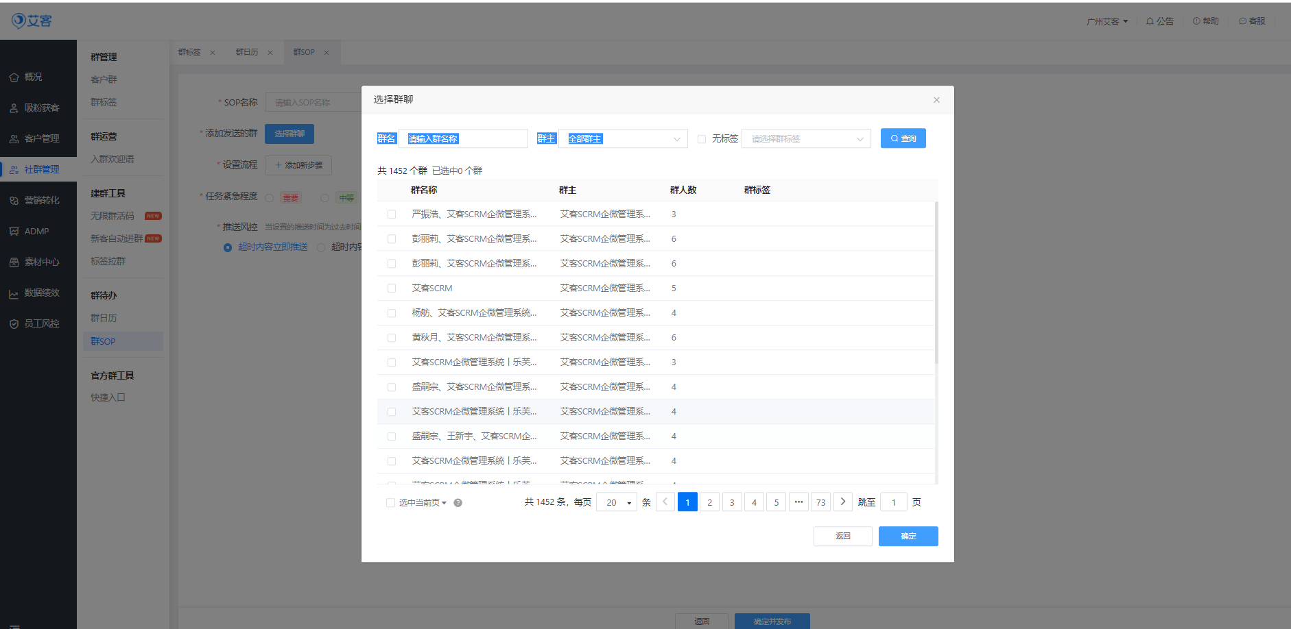現(xiàn)在,做企業(yè)微信社群營銷的企業(yè)、商家越來越多,做得不錯(cuò)的卻很少,究其原因:沒有精細(xì)化管理的社群,根本留不住私域客戶。然而私域規(guī)模越來越大,社群數(shù)量越來越多,為了實(shí)現(xiàn)營銷動(dòng)作保質(zhì)保量的高效落地,使用一款好用的社群運(yùn)營工具必不可少,艾客SCRM可以幫助商家把員工從重復(fù)的低效工作中解放出來,做更高效的運(yùn)營。趕緊來試試吧!