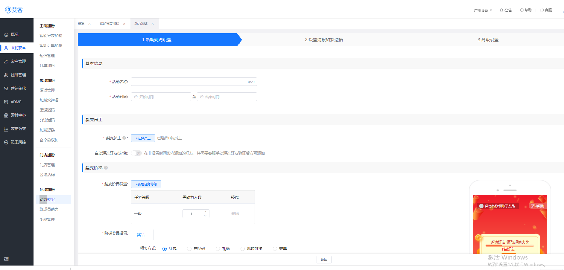 利用艾客裂變任務還能設置客戶助力條件,只有新客戶才能為好友助力,刪除員工助力失效,有效的規(guī)避薅羊毛行為,最大程度幫助企業(yè)獲利。