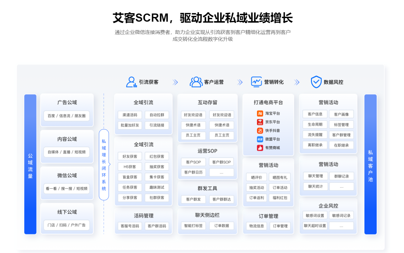 隨著流量紅利的消失,企業、商家在公域流量獲客成本越來越高,很多企業都紛紛開始搭建起自己的私域流量,然而,要做好私域流量運營,也少不了私域流量SCRM管理系統,下面跟著艾客來看看:武漢scrm私域流量管理系統哪個好?